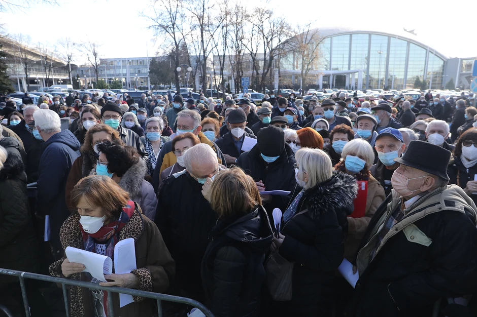 Interesovanje građana za vakcinaciju i danas je veliko, građani su formriali red ispred hala, a kolona automobila je do ulazne rampe na Sajam.