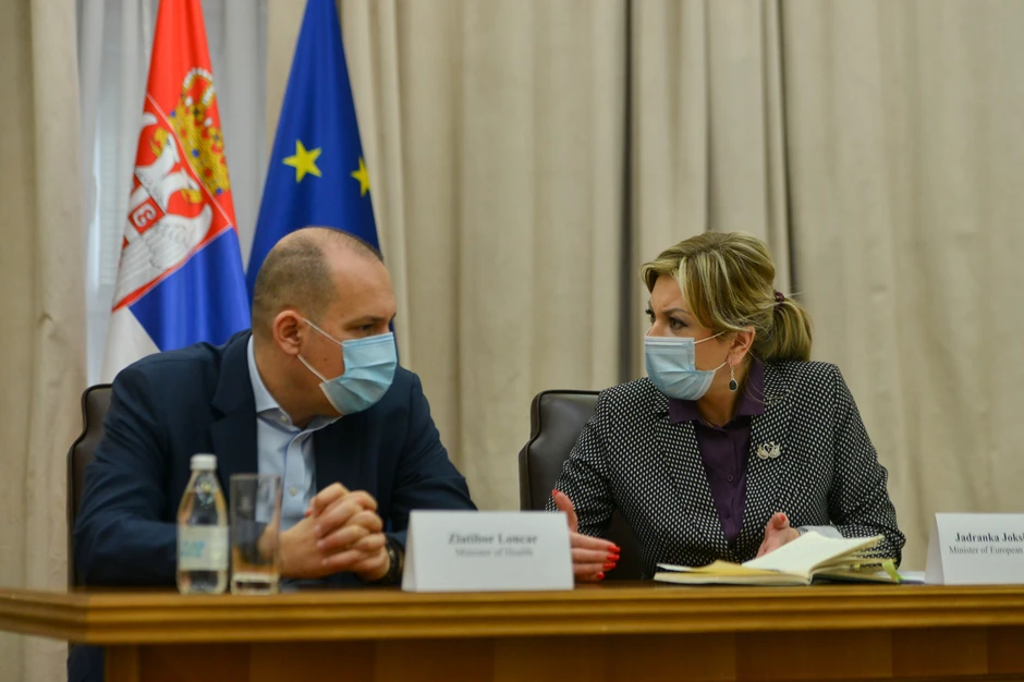 Ministar za evropske integracije Jadranka Joksimović razgovarala je danas sa šefom Delegacije EU u Srbiji, ambasadorom Semom Fabricijem i ministrom zdravlja Zlatiborom Lončarem o prioritetima vakcinacije u našoj zemlji, potrebama za nabavkom medicinske opreme, te o daljem jačanju zdravstvenih kapaciteta za borbu protiv kovid pandemije.