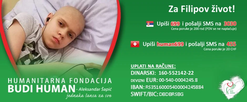 Filip Ivanović ima samo 12 godina, a već je dva puta doživeo čudo. Pre tri godine oboleo je sinovijalnog sarkoma, a do sada je preživeo dve operacije prilikom kojih su mu izvađene 44 metastaze. Ipak, bolest se vratila, a kao opcija za izlečenje pojavio se tretman "car-t-cell" za koji je potrebno izdvojiti čak 500.000 evra. Iako je deo novca skupljen, to još nije dovoljno.