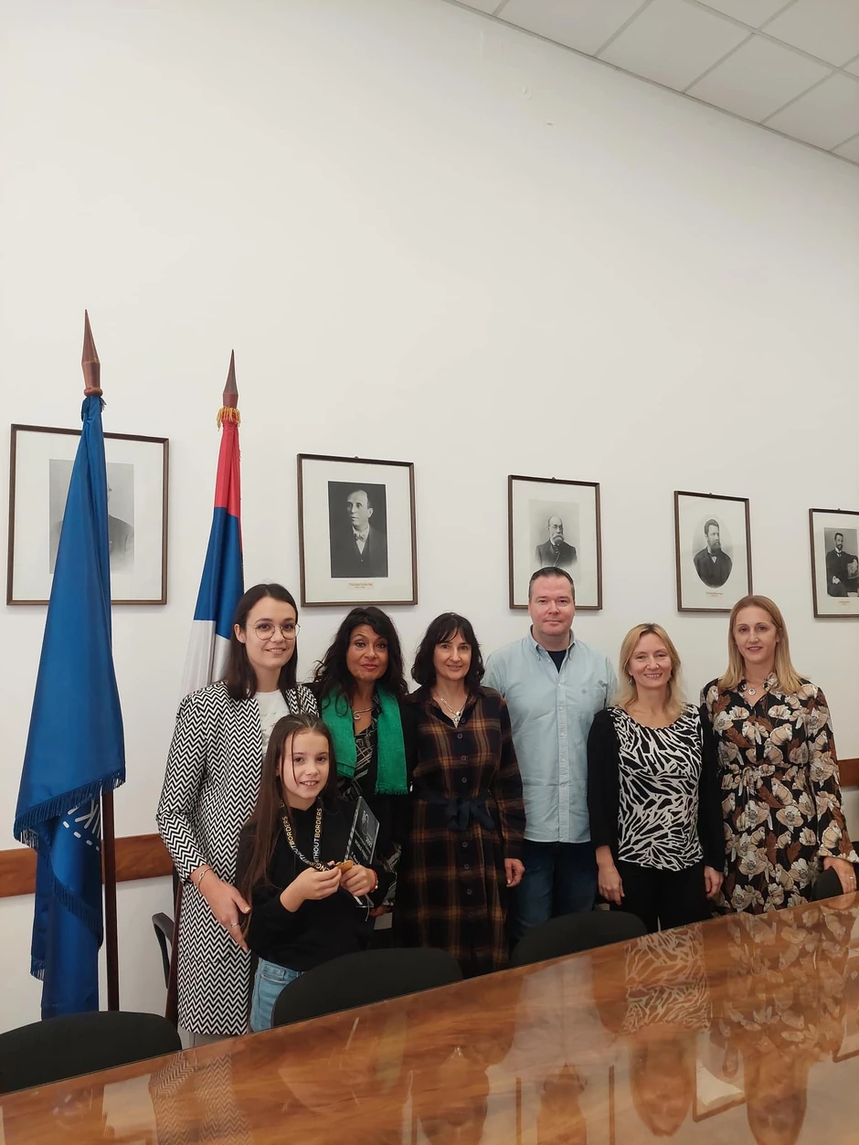 Desetogodišnja Zara Zamurović, učenica međunarodne škole „Provida Futuri” iz Zrenjanina, pobednica u najmlađoj kategoriji, i Zarina mentorka Dunja Antonić, alumnistkinja Filološkog fakulteta u Beogradu, razgovarale su sa dekanom Fakulteta prof. dr Ivom Draškić Vićanović i upravnicima i zamenicima upravnika Katedre za iberijske studije, na kojoj je Dunja diplomirala i odbranila master rad, i Katedre za anglistiku, na kojoj je engleski učila kao drugi strani jezik.