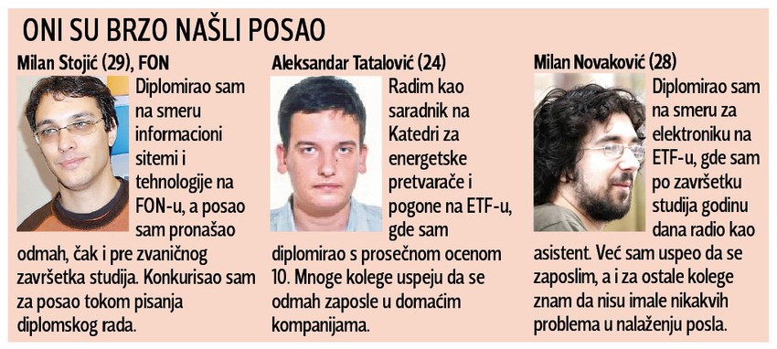 Slična je situacija i sa studentima FON-a na smeru informacioni sistemi, a do posla lako dolaze i studenti na Tehničkom fakultetu u Novom Sadu.