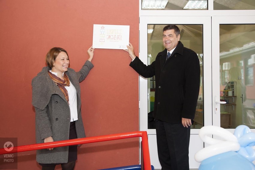 Milena Bugarinović, direktorka škole “Jovan Cvijić”, sa velikom radošću ustupila je prostorije ove ustanove za potrebe realizacije programa i pružila značajnu podršku. S obzirom da je objekat bio u sivoj fazi, adaptacija je obuhvatala kompletne radove na završetku objekta spolja i iznutra. Nakon urađene termoizolacije, fasaderskih radova i ugradnje spoljašnje stolarije, postavljena je nadstrešnica preko celog ulaznog trema, sanirano stepenište i izvedena prilazna rampa. Urađen je i nov razvod vodovodne i kanalazicone mreže, i u skladu sa potrebama vrtića izveden i nov razvod centralnog grejanja po prostorijama.