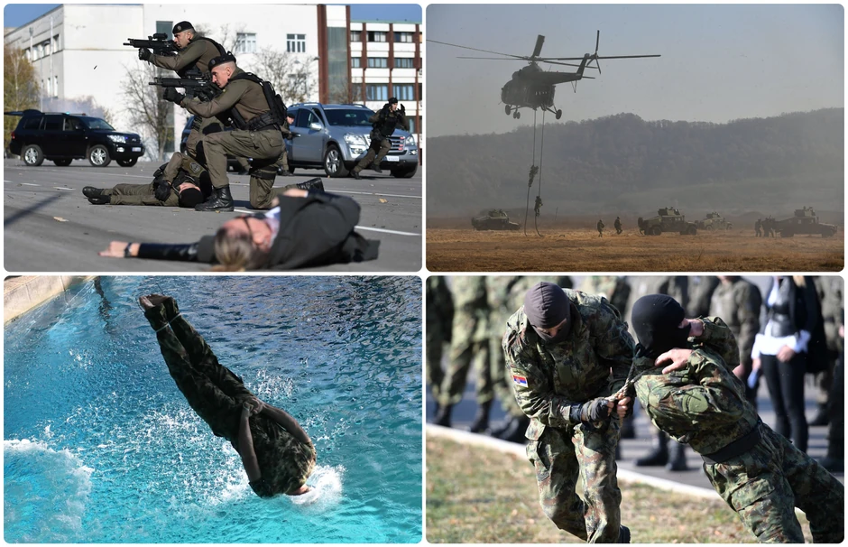 Pripadnici "Kobri", specijalne snage vojne policije, izvele su danas u kasarni "General Jovan Mišković" u Beogradu vežbu „izvršenje protivterorističkih i zadataka bezbednosne zaštite“ i pokazali zašto se smatraju jednom od najelittnijih jedinica u VS.