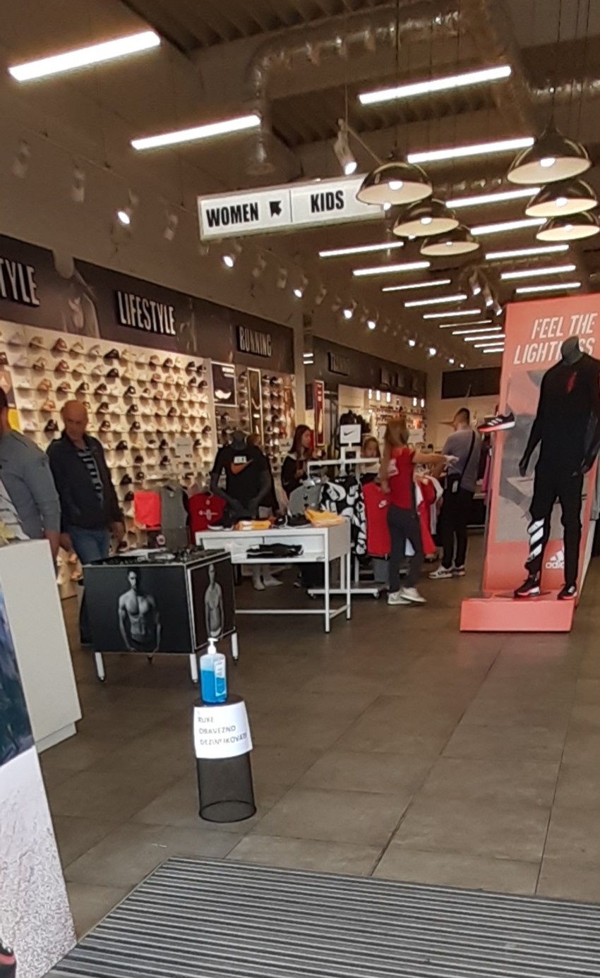 Na ulazu je postavljeno obaveštenje da su obavezne rukavice i maske i socijalna distance od dva metra, a one koji bi se zaboravili pa supustili masku dok, obezbeđenje je podsećalo na tu obavezu. Takođe, radnici obezbeđenja su pratili broj kupaca u samom objektu i po radnjama, ali nije bilo potrebe da se ograničava broj onih koji ulaze jer nije bilo neprimerenih gužvi.