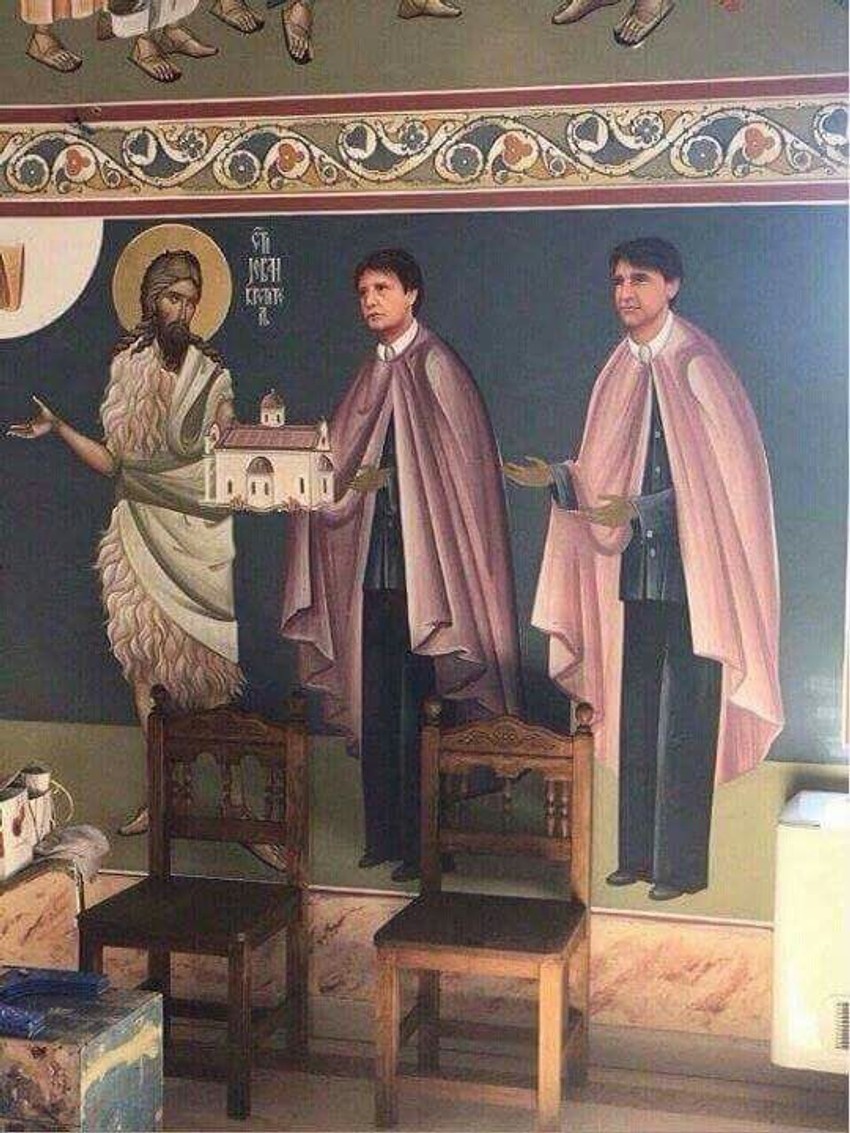Likovi bivšeg ministra i njegovog brata Bobana nalaze se, kako je i običaj kada je reč o ktitorima hrama, odmah pored lika sveca kojem je crkva posvećena. U ovom slučaju to je Sveti Jovan Krstitelj.