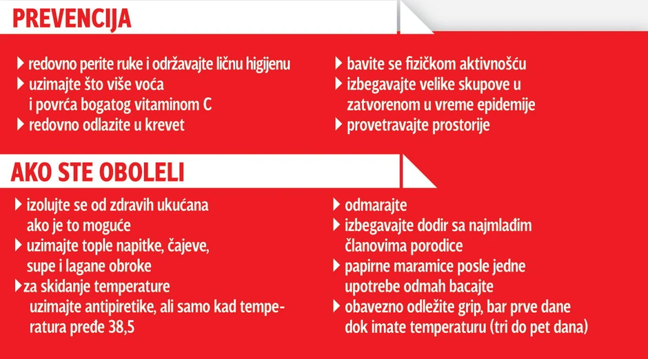 - Na početku smo epidemije gripa i tek će u narednim nedeljama rasti broj obolelih. Sada se beleži srednji intenzitet aktivnosti virusa. Najviše zaraženih biće od sredine februara do sredine marta. Epidemiološka situacija uobičajena je za ovo doba godine - kaže prim. dr Dragana Dimitrijević, nacionalni koordinator za grip u Institutu za javno zdravlje Srbije „Milan Jovanović Batut“.