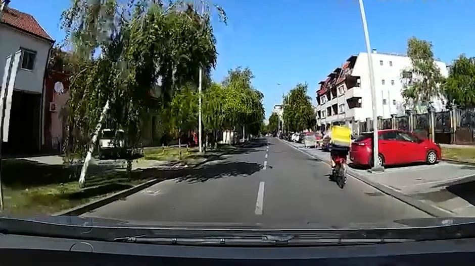 Tragikomičan snimak iz Pančeva u kome biciklista "Glova" usred bela dana udara otpozadi automobil na raskrsnici dok je na semaforu crveno svetlo skrenuo je pažnju na novu opasnost na putevima.