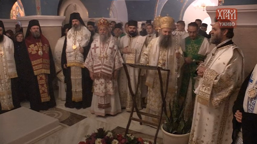 "Braćo i sestre, danas smo služili svetu liturgiju i parastos blaženopočivšem patrijarhu Irineju. Danas smo se ovde u zavetnom hramu svih Srba pomolili za pokoj duše blaženopočivšeg patrijarha Irineja, koji je prvi poglavar čiji su ostaci položeni u Hramu.