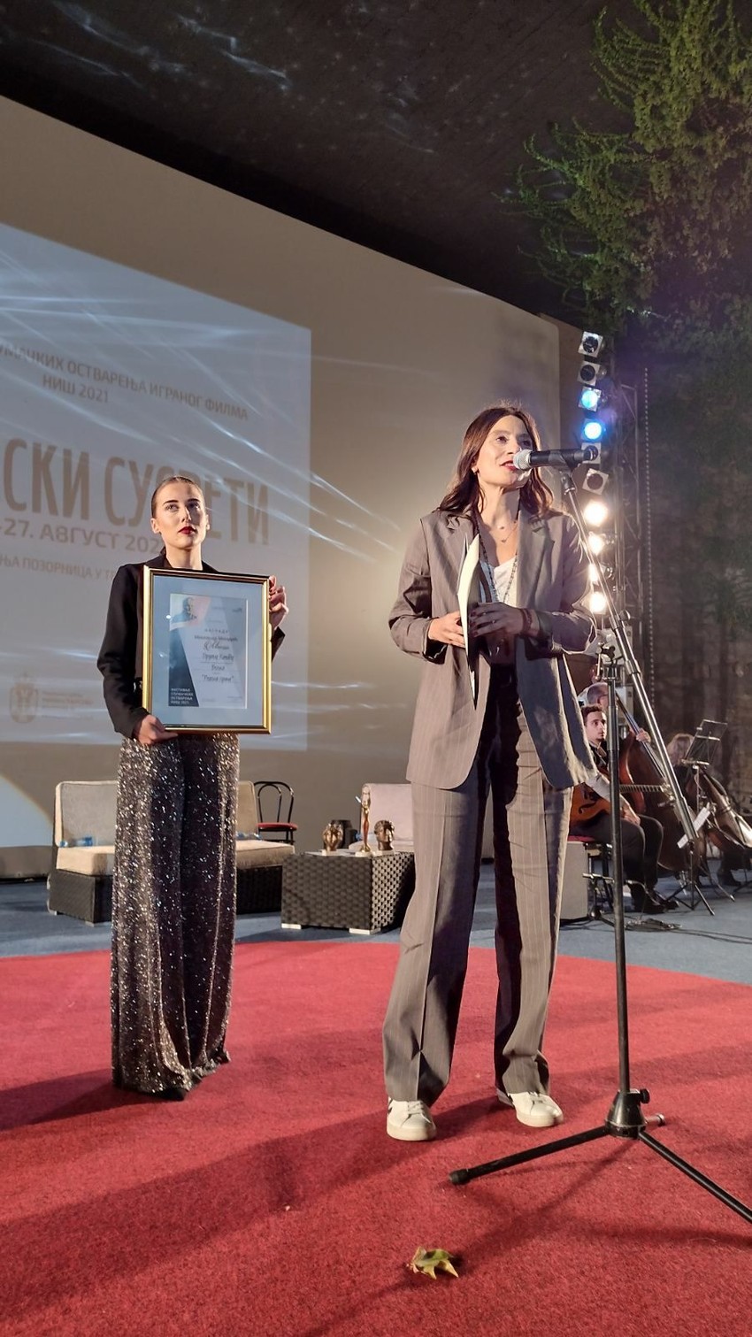 - Ova nagrada ima za cilj da nas seća na neizmeran talenat šarm, duhovnu lepotu i delo našeg dragog Milorada. Trudimo se da svake godine ove nagradu ponese upravo glumac ili glumica koji je najlepši mogući način prenose sličnu energiju i plene svojim darom kroz komediografska ostvarenja. S obzirom da prošle godine nagrada nije dodeljena zbog pandemije u izbor ovogodišnjeg dobitnika uvrstili smo i filmove odnosno uloge iz prošlogodišnje produkcije. Jednoglasnom odlukom nagrada Milorad Mandić Manda za najbolje ostvarenu komičnu ulogu dodeljujemo Gordanu Kičiću za ulogu Veljka u filmu "Realna priča". Dragi Gordane slušala sam te nedavno kako si odgovarao na neka pitanja i na pitanje da li ti nešto nedostaje rekao si: "ok sam". Ja mislim da ti je nedostajala ova nagrada. Želim ti da idalje da nalaziš svoje uloge, da uloge ne nalaze tebe, da imaš takav zarazan osmeh i dalje i da čuvaš svoje kolege i profesiju onako kako je i Milorad čuvao, rekla je Anastasija Ana Mandić.