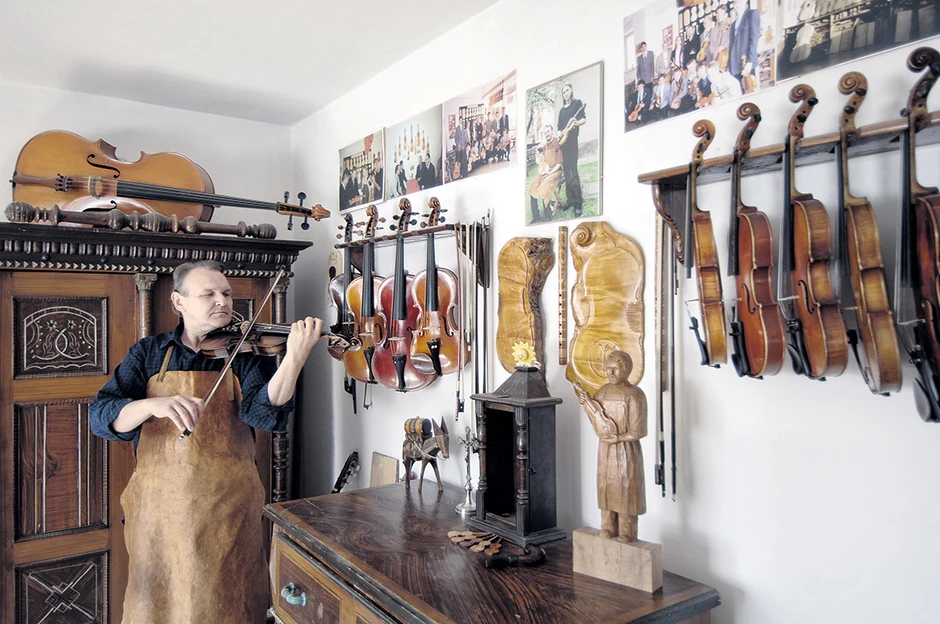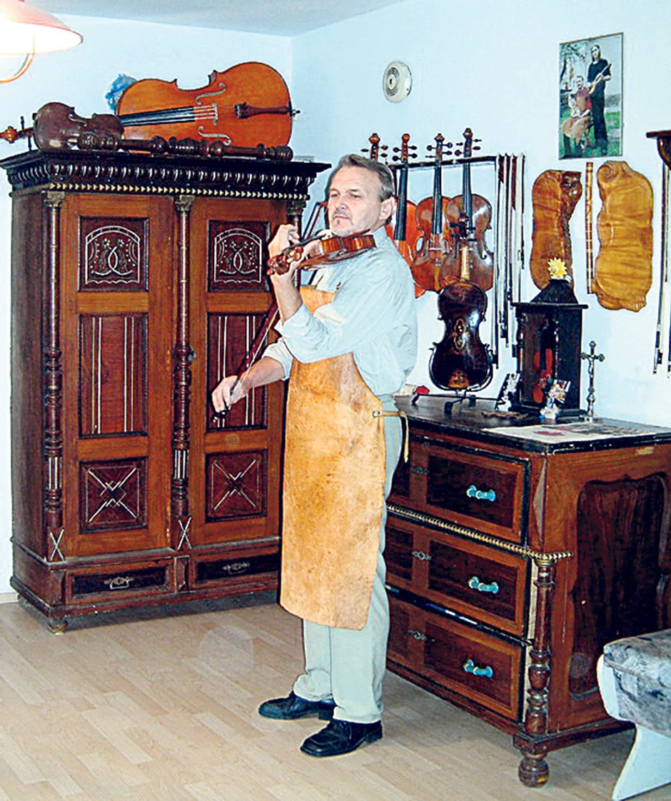 Svi danas rade mašinski, ali on i njegov sin violinu prave uz dleto, rende i ruke. Vibracije mašina štete finoj strukturi drveta i tabla onda zvuči plehano. Zato fabrički rađen instrument nikada ne može biti na nivou ručno napravljenog. Za plemenit zvuk violine treba, ipak, ruka.