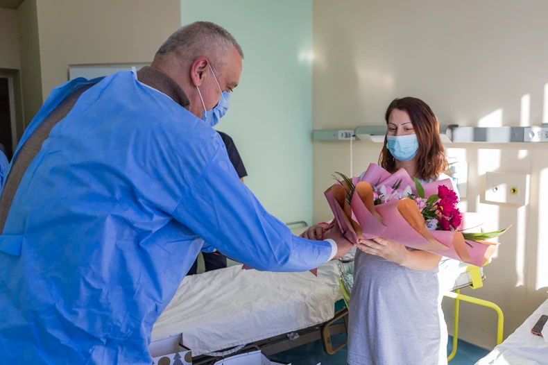Današnjoj poseti prvorođenoj bebi u novoj 2023. godini prisustvovali su i v.d. direktora Opšte bolnice Subotica dr Saša Dželebdžić i pomoćnica gradonačelnika za oblast informisanja i poslove Kabineta gradonačelnika Vesna Bosančić.