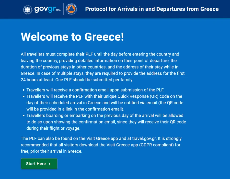 Svi putnici moraju da imaju popunjen PLF formular Nakon registracije na ovom sajtu i otvaranja sopstvenog profila, pored ličnih podataka biće neophodno uneti broj leta sa avionske karte, kao podatke o smeštaju i broju dana u Grčkoj.