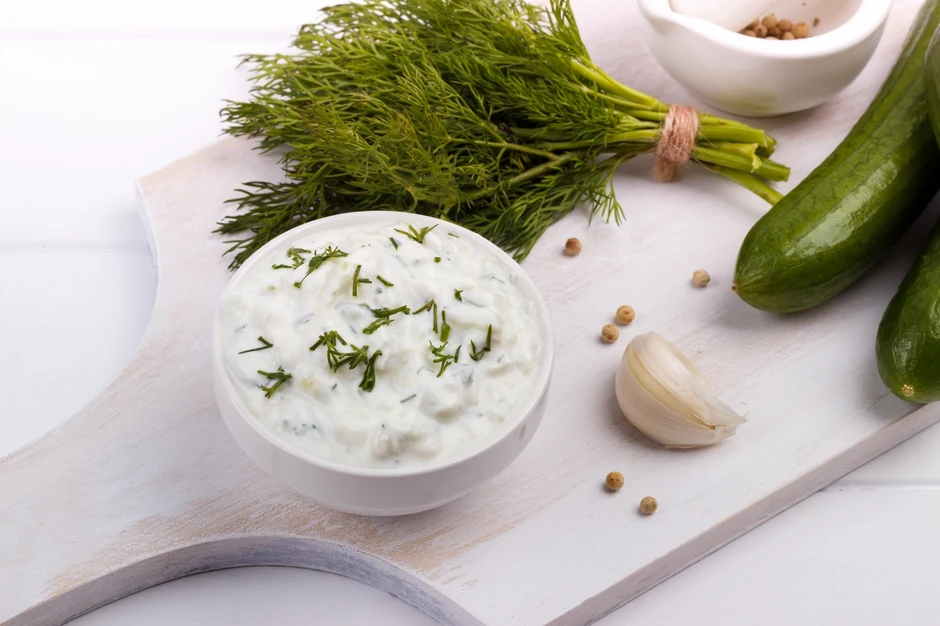 100 grama dr Milk Sitnog niskomasnog svežeg sira, 100 grama dr Milk Top fit svežeg obranog sira, 100 grama Dr Milk jogurta sa 1,6 % mm, 1 krastavac, vezica sveže mirođije, čen belog luka