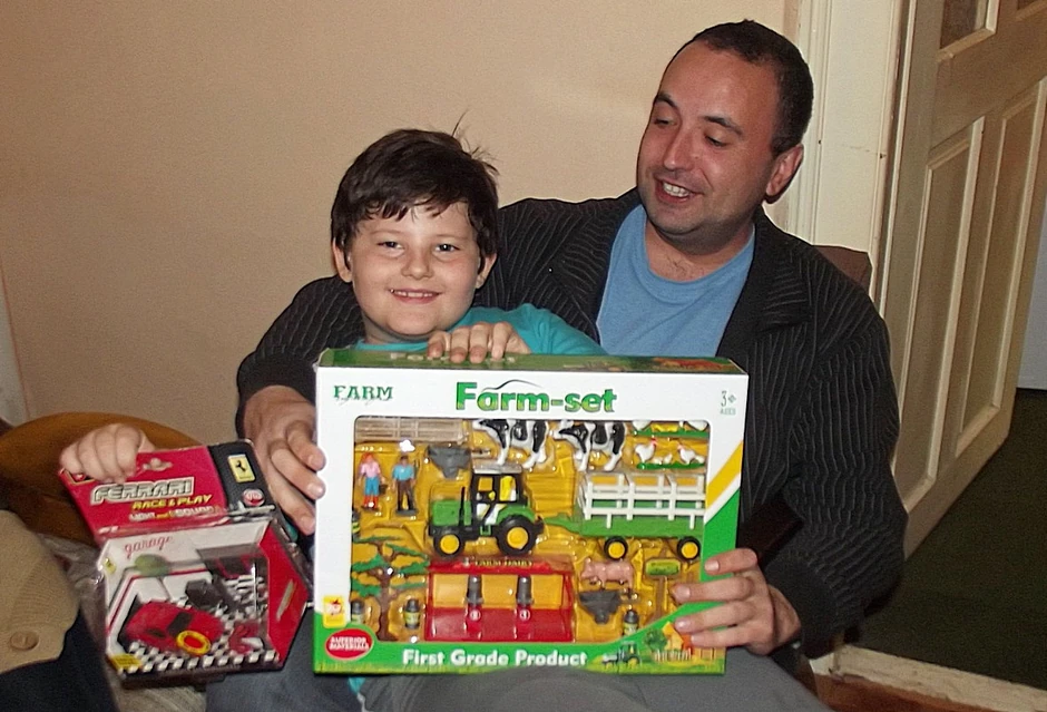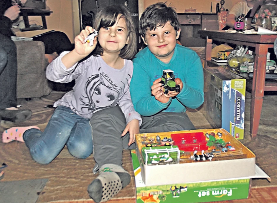 Iako je soba bila puna igračaka, koje su ovim mališanima donirali „Dexy co“ i „Magična oaza“, Gregor se fokusirao samo na jednu. Mini-farma ga je podsetila na oca koji je preminuo 2010. godine.