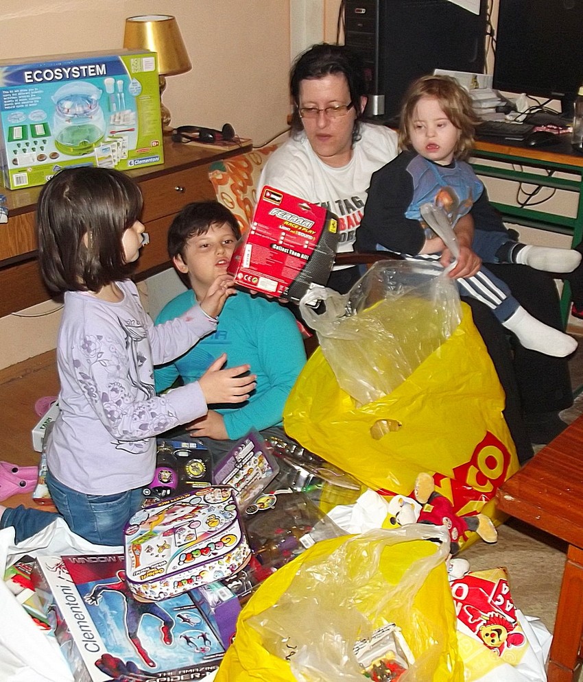 Adrijan, koji boluje od Daunovog sindroma, samo je stidljivo posmatrao kako se njegovi brat i sestra raduju poklonima.