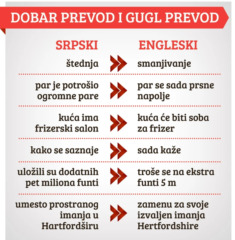 Prošle nedelje “Gugl translejt” unapredio je sistem prevođenja stranih jezika, među njima i srpskog. Međutim, kao što lako može da se proveri, „Guglu“ i dalje srpski baš teško ide.