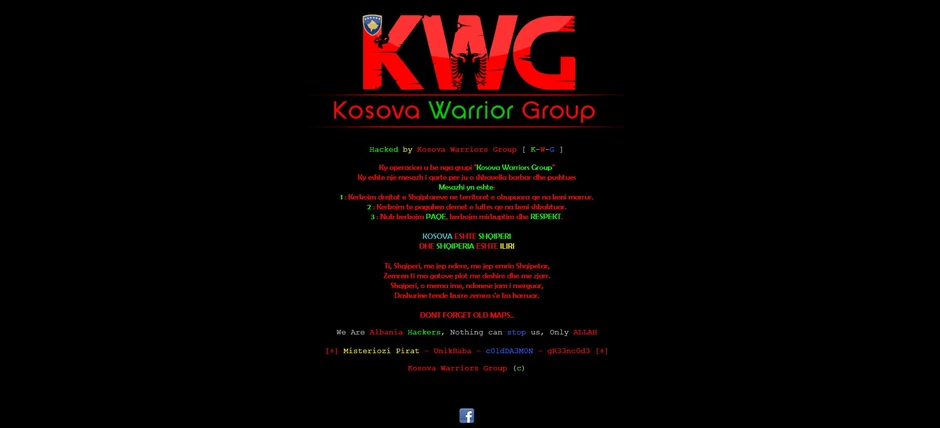 Na sajtu www.stambenokg.co.rs, a nešto pre toga i na sajtu www.studentskicentar-kg.rs, videla se samo oznaka i poruka na albanskom, s potpisom hakerske "Kosovo Warrior Group".
