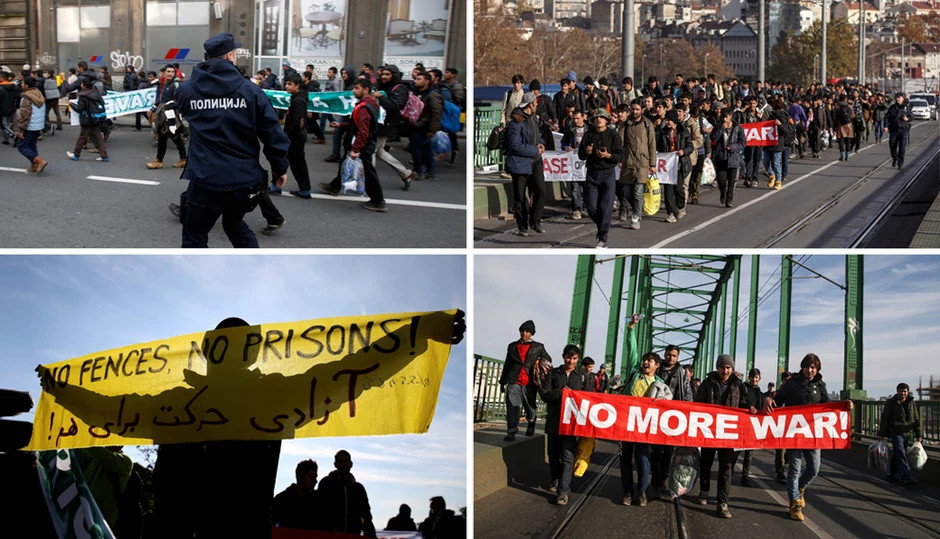 Grupa od oko 150 migranata krenula je u petak peške iz Beograda ka Hrvatskoj, kako bi put nastavili ka nekoj od zemalja Zapadne Evrope. Međutim, policija im nije dozvolila da prođu granični prelaz pa su migranti ostali da sede u blizini i da na taj način protestuju tražeći da se granice otvore.