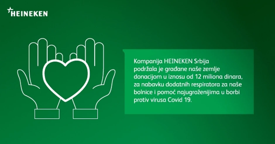 Budući da pomaganje zajednice i društvenu odgovornost prepoznaje kao sastavni segment svog poslovanja, HEINEKEN Srbija je među prvima donirala 12 miliona dinara u cilju nabavke respiratora za bolnice i pomoć najugroženijim pacijentima.