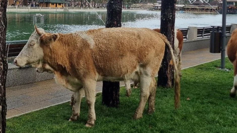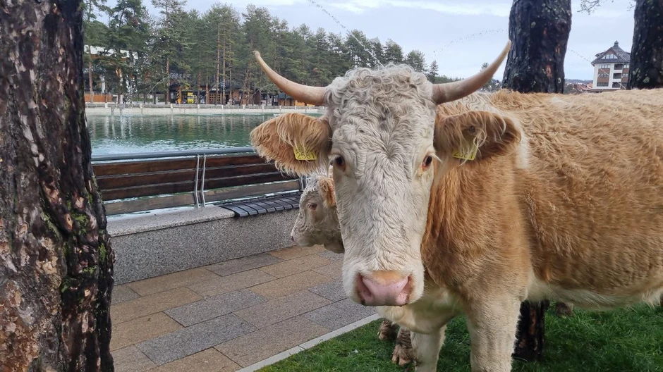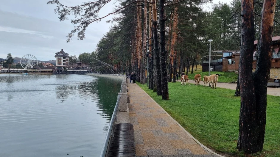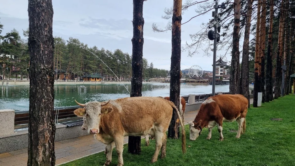 Iako se često može čuti kako je centar Zlatibora nalik onom u nekom velikom gradu, ovog jutra su na Kraljevom trgu boravili gosti koji potvrđuju nešto sasvim suprotno. Nekoliko krava bezbrižno je šetalo i paslo travu tik uz jezero, što je obradovalo posetioce.