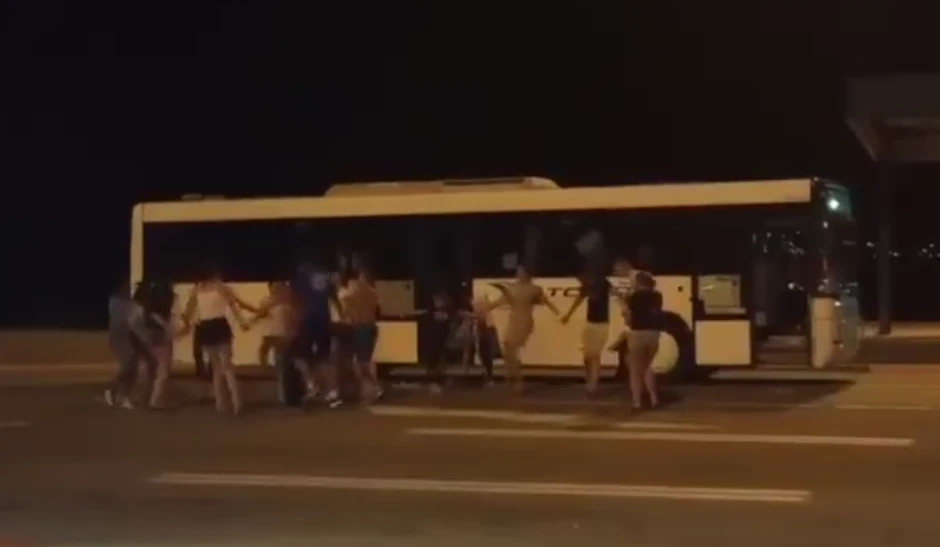 Čekanje na graničnom prelazu nije za sve problem, jer neki putnici očigledno znaju kako da "prekrate" vreme i to igrajući kolo ispred autobusa koji čekaju u koloni.