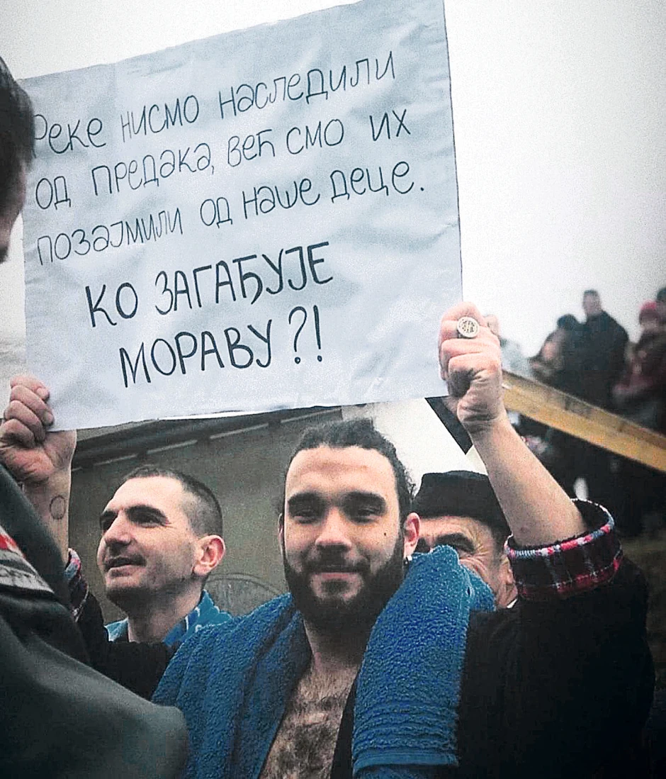 Ali, kako je Ilija objasnio, obezbeđenje manifestacije mu je prišlo i pocepalo transparent uz obrazloženje - "Nije vam ovo politički skup". Ilija Stefanović iz Čačka bio je jedan od plivača za časni krst. Po deseti put je plivao zato što, kako kaže, poštuje tradiciju, ali i Moravu pored koje je odrastao. Bio je još hrabriji da javno istakne svoj stav kada je zagađenje Zapadne Morave u pitanju. Zato je sa sobom i poneo transparent sa porukom da je treba čuvati i pitanjem "Ko zagađuje reku?".