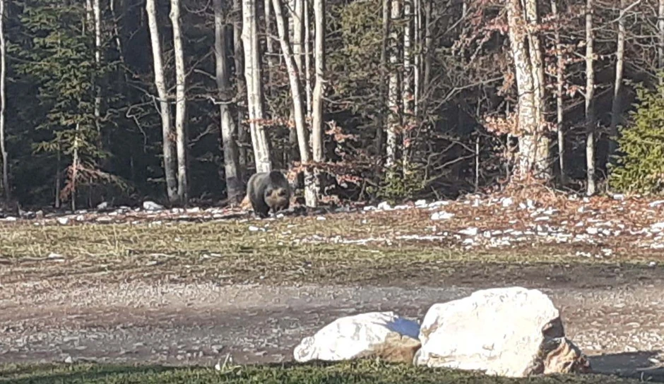 Dok su prolazili putem kroz mesto Osluša na samo 15-ak metara od njih pojavio se mrki medved koga je očito posle zimskog sna omamilo lepo vreme. Izašao je iz šume i naspram sebe video ljude. Par trenutaka iz je gledao, a onda, verovatno uverivši se da mu ne žele zlo, bez mnogo uzbuđenja spustio glavu i nastavio da njuška okolo tražeći ručak.