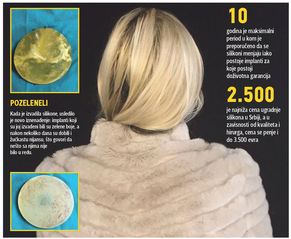 - Kod Milene je taj puknuti silikon stajao u dojci od 10 do 15 dana. Svaki organizam različito reaguje, ali najčešće se javlja bol, otok, deformitet dojki. Kasnije i temperatura, a krajnji ishod je sepsa - ističe dr Jovanović.