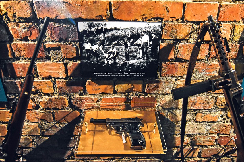 Drugi svetski rat u grad je doveo ustaše i Gestapo. Počelo je ubijanje i hapšenje Srba koji su iz zatvora vođeni na groblje i bacani u jame sa živim krečom. Muzej prikazuje autentične puške iz tog perioda, mitraljeze sa grbom NDH i originalne fotografije bacanja zatvorenika u jamu. Naspram njih, postavljen je i rad vajara koji dočarava vapaj ljudi bačenih u jame.