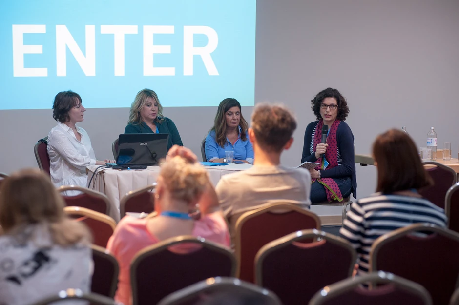 Pored Olge Mirković Maksimović, izlagači u sali Enter bile su i Ksenija Kostić iz "PS presa" i novinarke RTS-a Milica Momčilović i RTCG Snežana Radusinović.