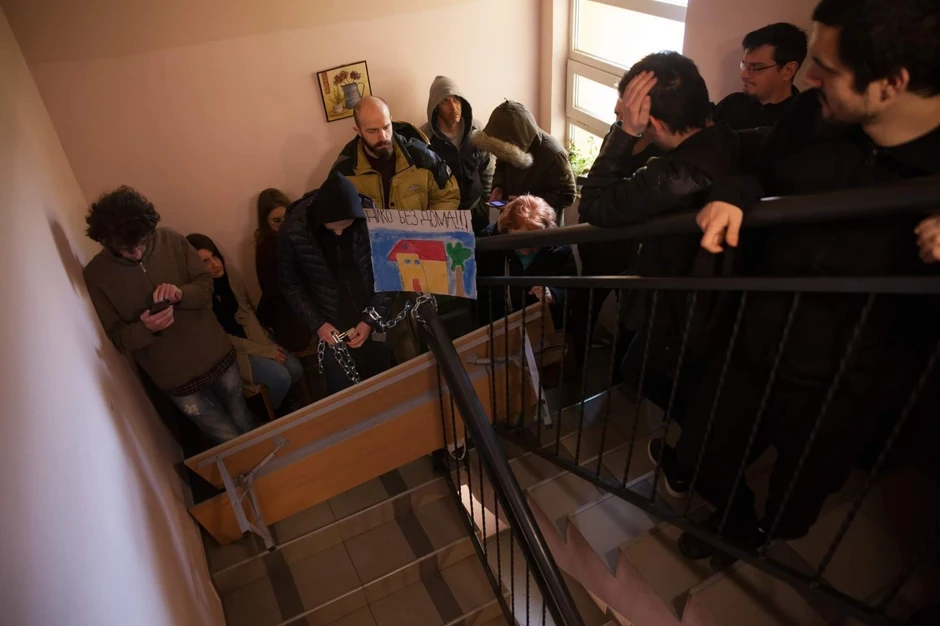 Okupljeni građani, među kojima je najviše bilo članova udruženja "Krov nad glavom", postavili su lance i barikadu na stepenice ispred Tatjaninog stana i tako nisu dozvolili sudskim izvršiteljima i policajcima da isele Aničiće.