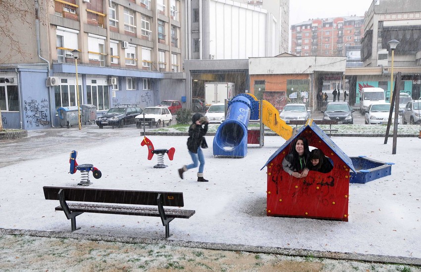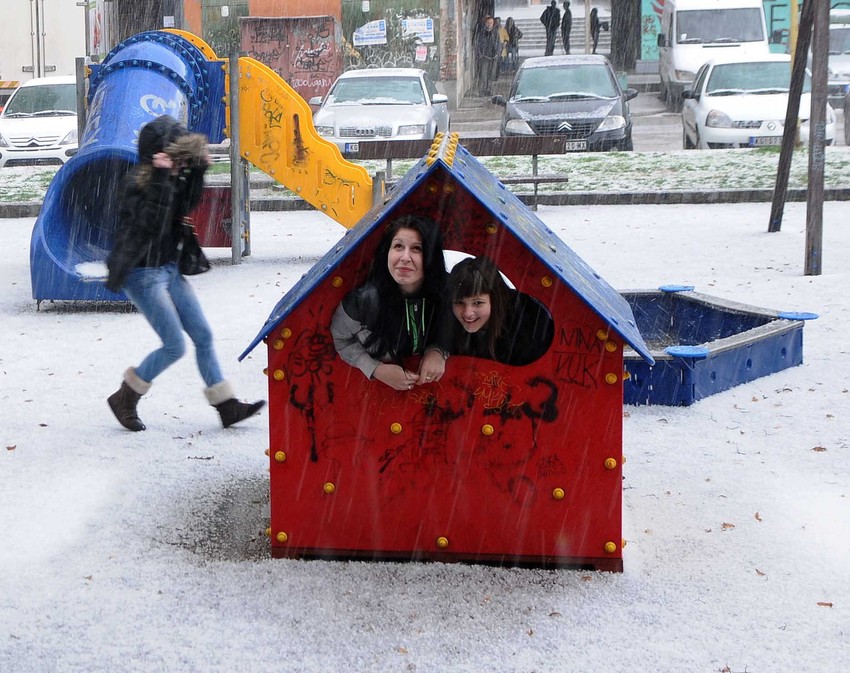 Kragujevčani koji su se zatekli na ulici morali su da potraže sklonište u kućici za igru.