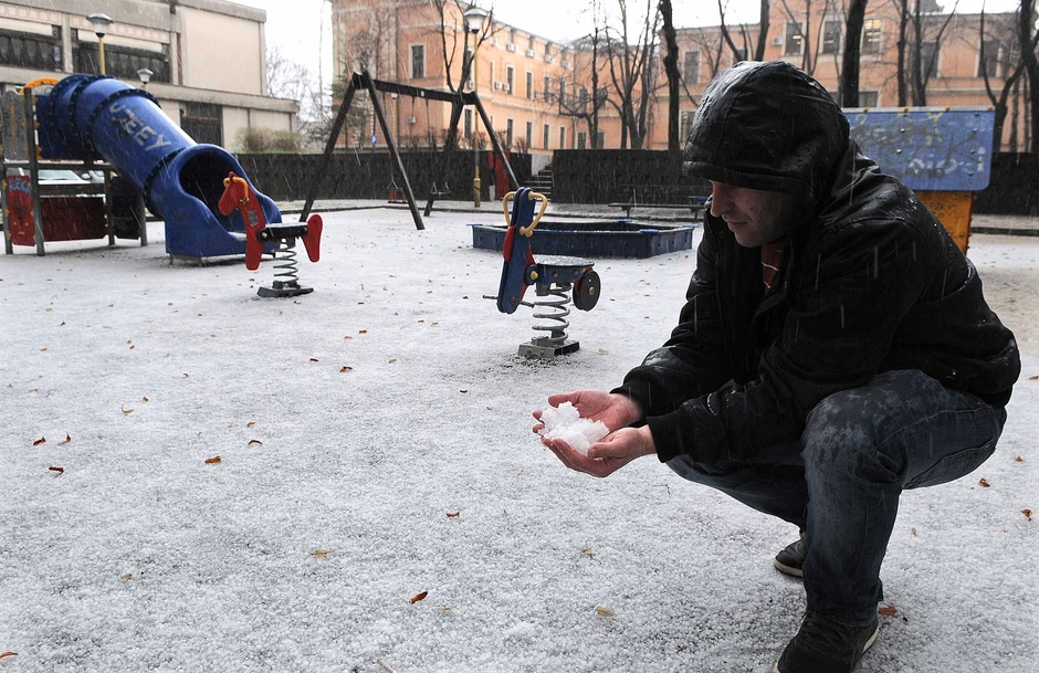 Grad veličine oraha potpuno je prekrio dečije igralište.