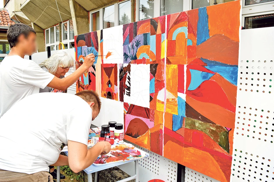Najinteresantniji deo kolonije bilo je oslikavanje velike slike, po uzoru na remek delo nemačkog slikara Paula Klea "Hramovne bašte", na kojoj je zajedinički radilo 18 đaka.