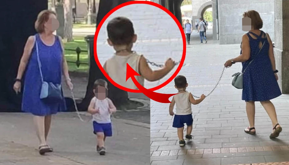 Baba je šetala svog unuka na lancu koji mu je bio svezan oko vrata!