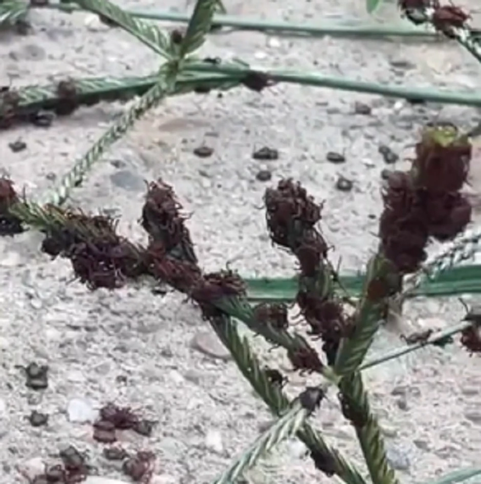Kako se vidi na snimku obavljenom na TikTok stranici "BAP vesti", insekti koji liče na krpelje razmileli su se svuda po dvorištu, a na jednom mestu zabeležen je ogroman broj ovih parazita.
