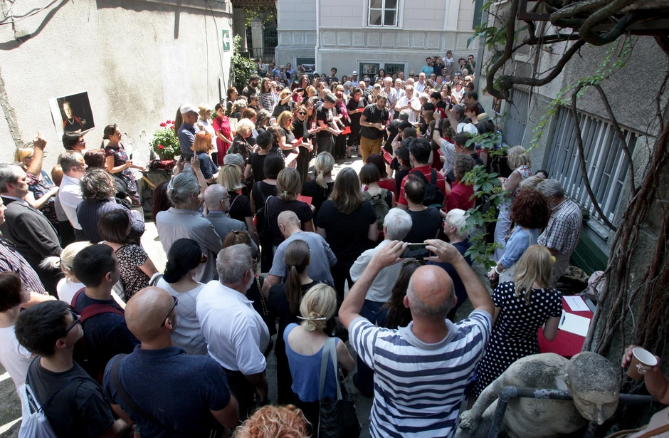 Komemoracija Borki Pavićević, dramaturgu, eruditi, publicisti, velikom borcu, održana je u Centru za kulturnu dekontaminaciju, a počela je pesmom. Horskom. U dvorištu.