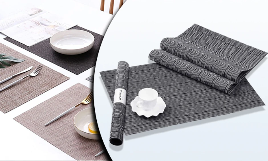 Komplet stonih podmetača ulepšaće svaki sto! 4 stona podmetača izrađena su od PVC i poliestera čime se postiže visoka izdrživost i otpornost na kidanje, a ovaj set može biti vaš za samo 499 dinara klikom na gruppi.rs.