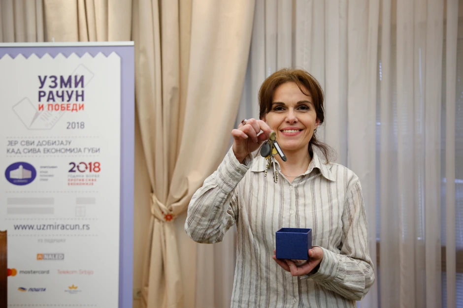 Danas je uručen stan dobitnici u prvom izvlačenju nagradne igre "Uzmi račun i pobedi". Srećnoj Zemunki, Dejani Lukić, ključeve je uručio ministar za rad, zapošljavanje, boračka i socijalna pitanja, Zoran Đorđević.