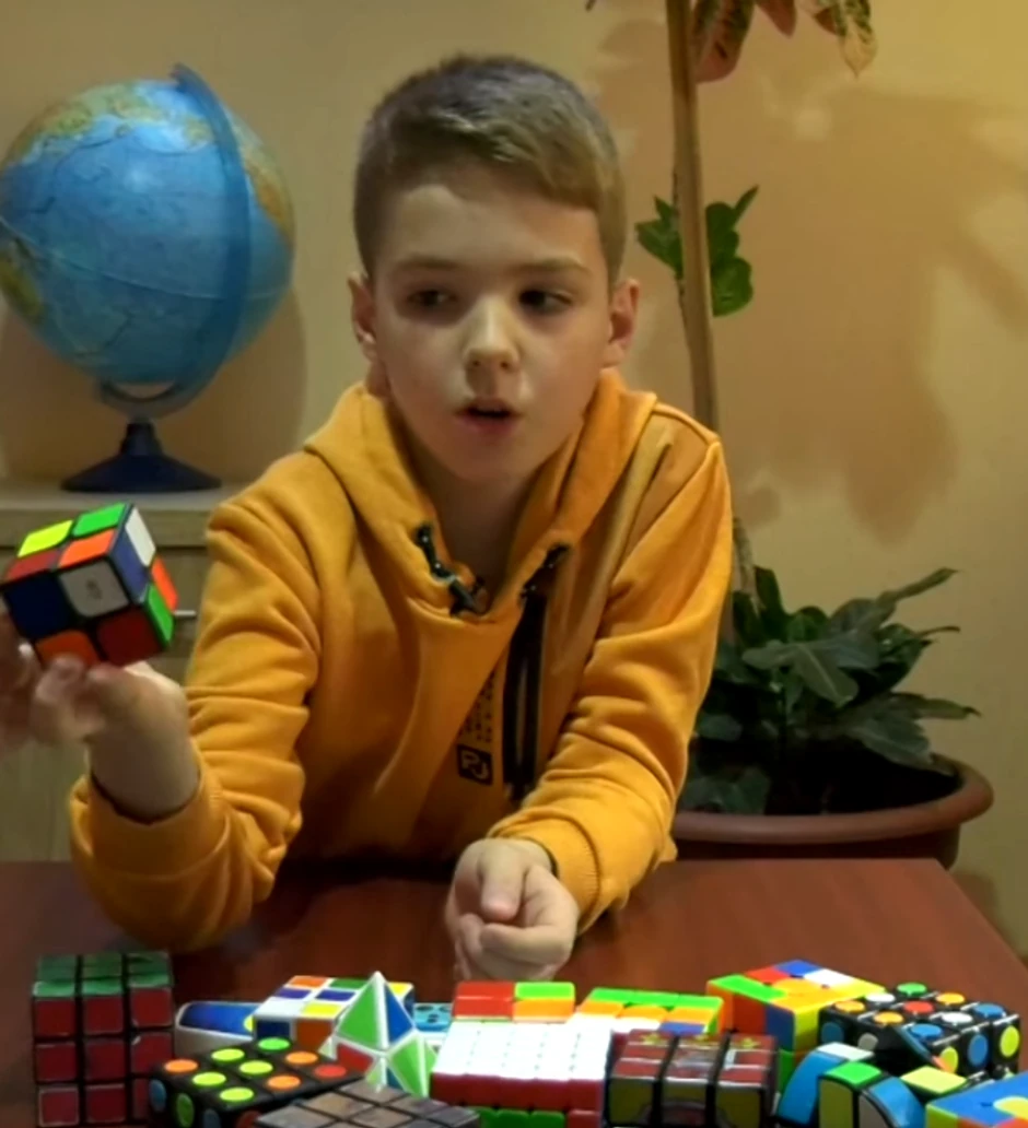Njegov otac Aleksandar tvrdi da se njegov sin prvo se zainteresovao za kocku 3x3 i verovatno je video da je komplikovano za slaganje i onda je tražio kocku 2x2.
