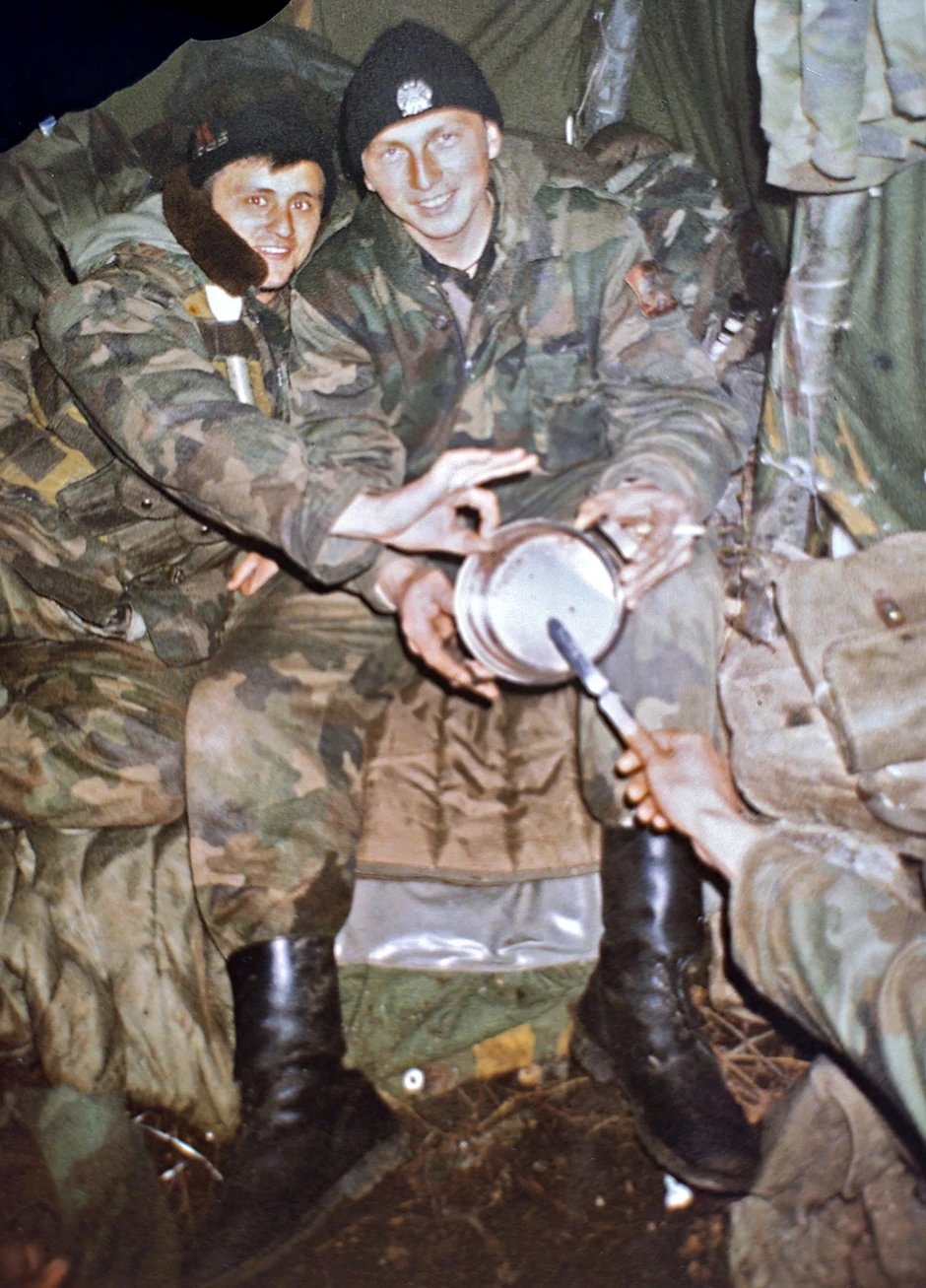 Prvi napad avijacije trajao je 10 minuta, nisu znali gde su, od detonacija, granja, kamenja, zemlje… Pokušali su da ga spreče da izađe iz rova. Jedan od njih ga je čak i uhvatio za nogu, kako bi ga povukao nazad, ali nije mogao da ga zaustavi.