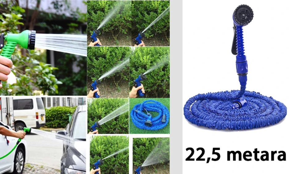 Zalivajte specijalnim Magic Hose crevom sa prskalicom koje se povećava na tri puta veću dužinu od originalne! Izaberite dužinu koja vam odgovara i nabavite Magic Hose crevo od 7,5 metara za 699 dinara, a ako se odlučite za najveću dužinu od 22,5 metara možete je kupiti za 1.299 dinara samo na gruppi.rs.