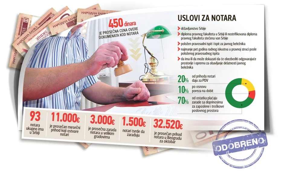 Da je posao notara unosan, za „Blic“ je potvrdio i Danilo Dozet, notar iz Niša. On je priznao da je u septembru imao promet od 10.000 evra, ali i da je od te sume morao da plati zakup prostora, poreze i plate za radnike. Iz Javnobeležničke komore poručuju da notari, kad podmire sve dažbine, imaju oko 1.500 evra zarade.