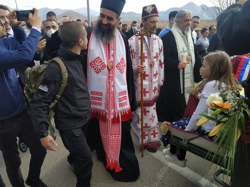 Ovaj mladić živi u Kosovskoj Mitrovici, potiče iz mešovitog braka, a pravoslavlje je prešao 2016. godine. Danas je sa rančem na leđima došao da isprati vladiku Atanasija do manastira Tvrdoš, gde je sahranjen.