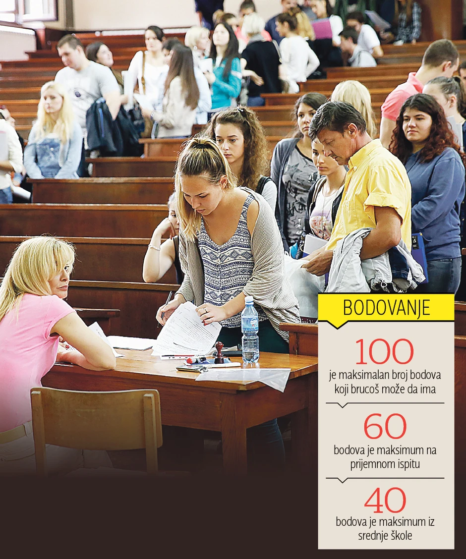 Tome treba dodati i dobro urađen prijemni ispit, na kojem je moguće osvojiti najviše 60 bodova. Među najtraženijim fakultetima su, po pravilu, medicinski, za informacione tehnologije, pravni...