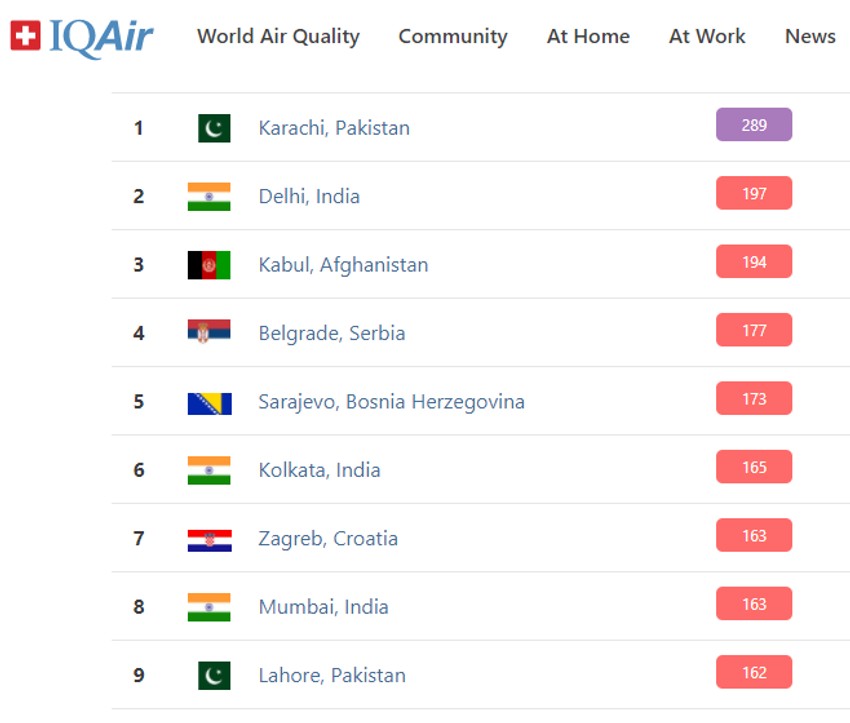 Teže nego u našoj prestonici jutros se disalo još u Karačiju, glavnom gradu regije Sind i najvećem pakistanskom gradu, zatim u Delhiju u Indiji, kao i u prestonici Avganistana, u Kabulu.