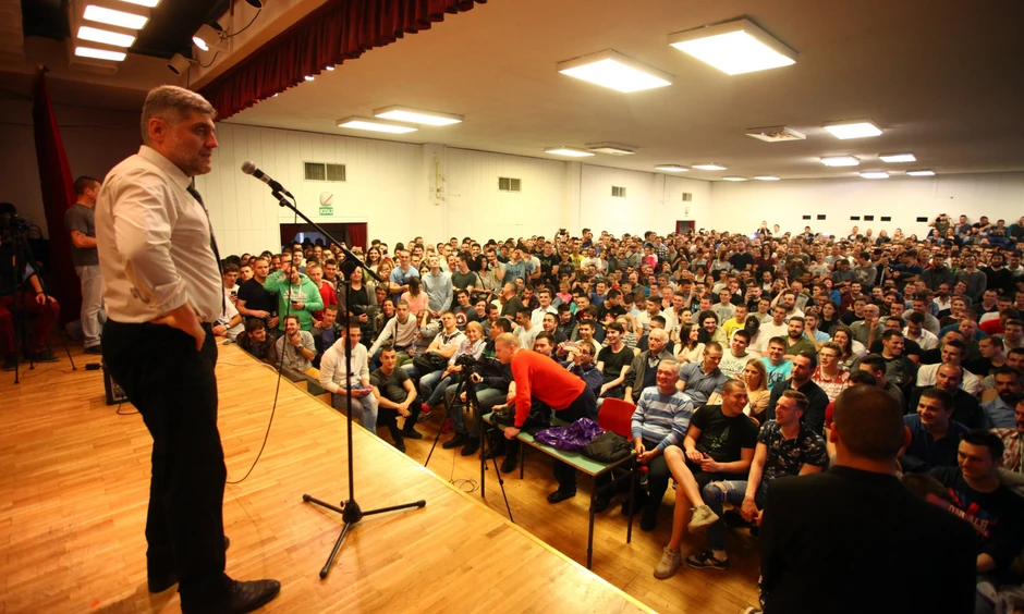 Predavanje koje je održao nazvao je "Bitka za zdravu Srbiju", a kako saznajemo, čitavu Halu sportova na Novom Beogradu iznajmio je na tri sata. Iznajmljivanje je u celosti izmirio, a jedan sat zakupa Hale sportova iznosi 11.111 dinara.