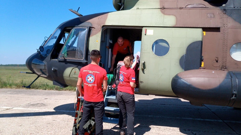 Paraglajderista je sa višestrukim prelomima i helikopterom VS transportovan u Klinički centar Niš, preko niškog vojnog aerodroma.