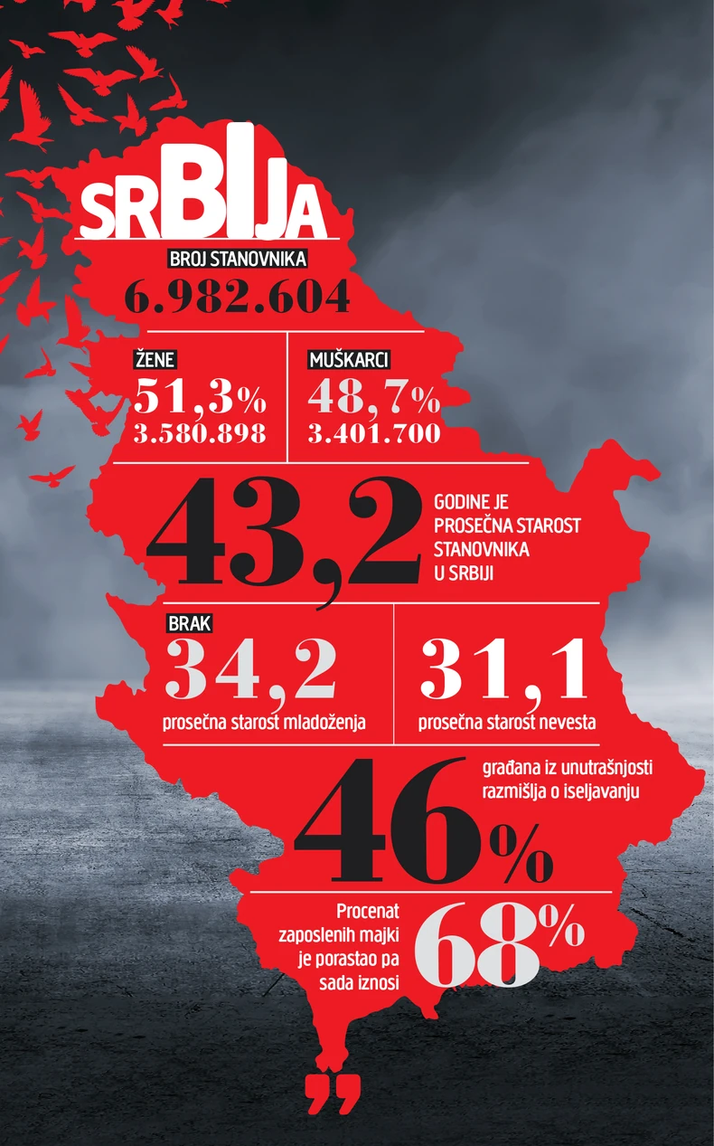 Koliko nas ima, koji je prosek starosti? Kada se odlučujemo na brak, koji profil žena se danas najčešće odlučuje da rađa? U kom pravcu se demografski kreće Srbija? Šta kažu mladi?