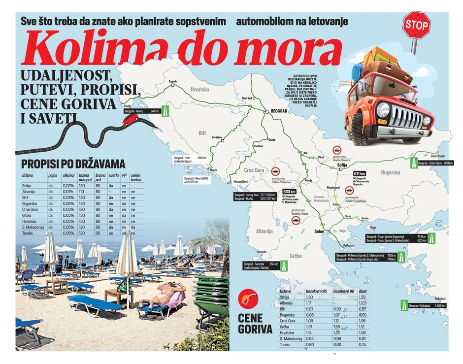 Međutim, svi koji nameravaju da sopstvenim automobilima krenu na dalek put trebalo bi dobro da se informišu i organizuju o idealnom itinereru, stanju na putevima, dokumentaciji koja je u doba korone potrebna za ulazak u pojedine zemlje, ali i neophodnim papirima, saobraćajnim propisima i kaznama koje prete za njihovo nepoštovanje, cenama benzina i putarina.